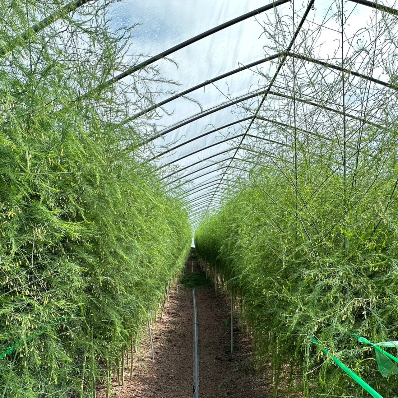 アスパラが元気に育つよう、剪定・水やり・温度管理等細部まで気を配りながら栽培しております。また、安心安全に配慮し近隣の和牛農家が作る完熟堆肥をふんだんに使用、有機質肥料中心で育てております。