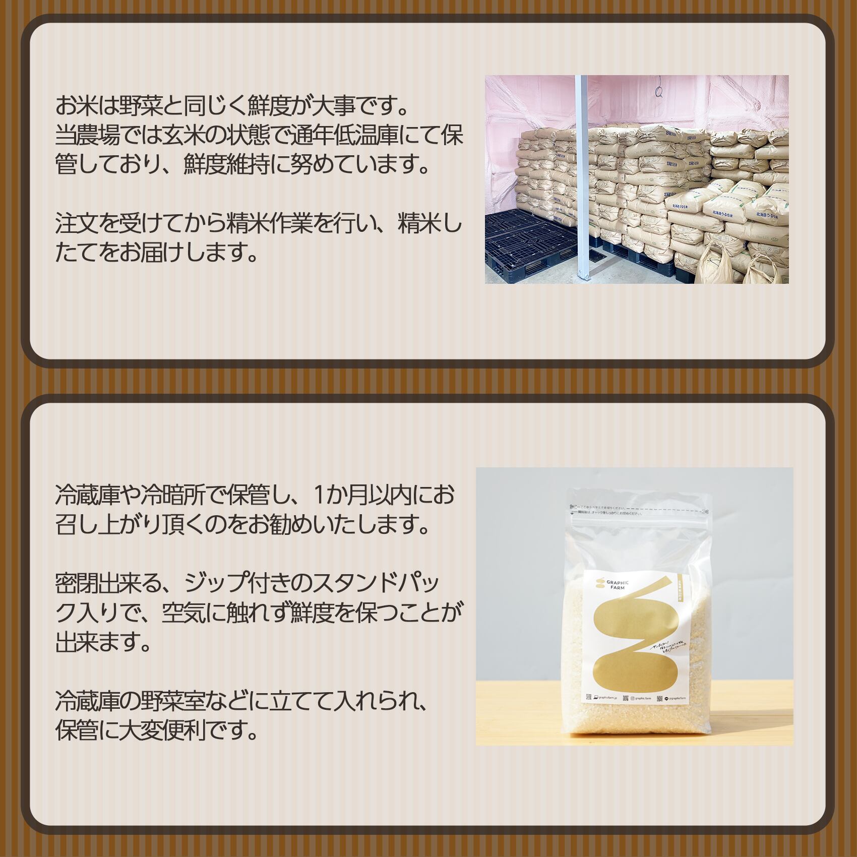 お米は野菜と同じく鮮度が大切です。当農場では玄米の状態で通年低温庫にて保管しており、鮮度維持に努めています。また、注文を受けてから精米作業を行い、精米したてをお届けいたします。