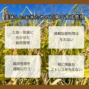 当農場の土地、気候に合わせた栽培を心がけています。過剰な肥料等はやらず、栽培 管理も適期に行い、稲に無駄なストレスを与えないようにすることで、美味しいお米に育つよう栽培しています。
